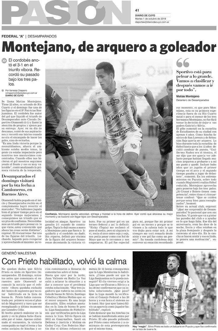 Diario de Cuyo | HOME | Noticias | Tapa Pasión Tapa Pasión 1 de Octubre 2019 Por Redacción Diario de Cuyo 30/09/2019 · 0:00 Escuchar la noticia Escuchar la noticia Your browser doesn’t support HTML5 audio Tapa Pasión Ver los comentarios ›