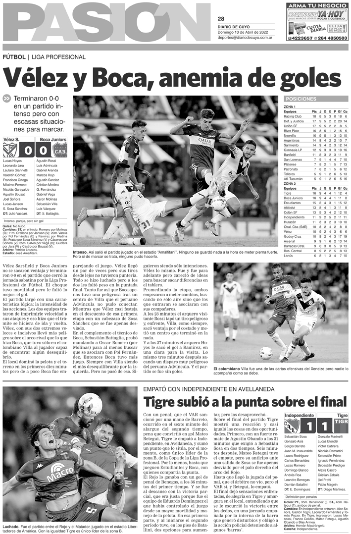Diario de Cuyo | HOME | Noticias Tapa Pasión 10 de Abril de 2022 Por Redacción Diario de Cuyo 10/04/2022 · 0:00 Escuchar la noticia Escuchar la noticia Your browser doesn’t support HTML5 audio Ver los comentarios ›