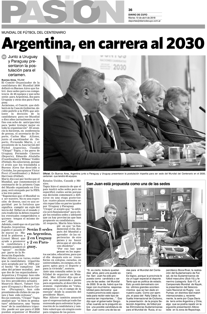 Diario de Cuyo | HOME | Noticias | Tapa Pasión Tapa Pasión 10 de Abril del 2018 Por Redacción Diario de Cuyo 09/04/2018 · 0:00 Escuchar la noticia Escuchar la noticia Your browser doesn’t support HTML5 audio Tapa Pasión Ver los comentarios ›