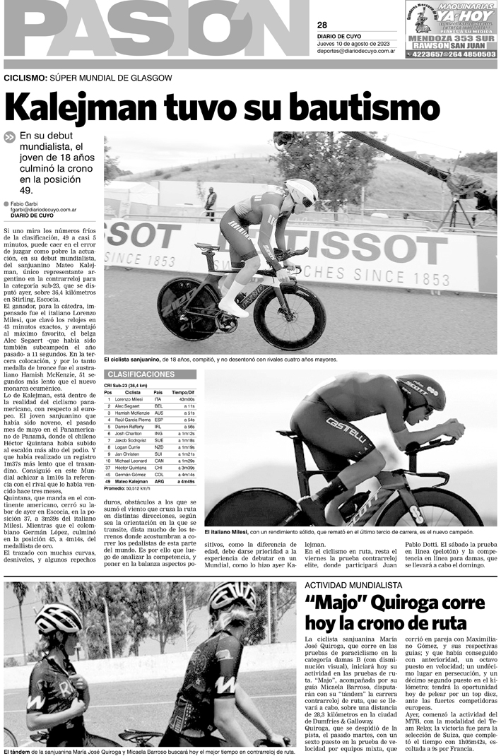 Diario de Cuyo | HOME | Noticias Tapa Pasión 10 de Agosto de 2023 Por Redacción Diario de Cuyo 09/08/2023 · 0:00 Escuchar la noticia Escuchar la noticia Your browser doesn’t support HTML5 audio Ver los comentarios ›