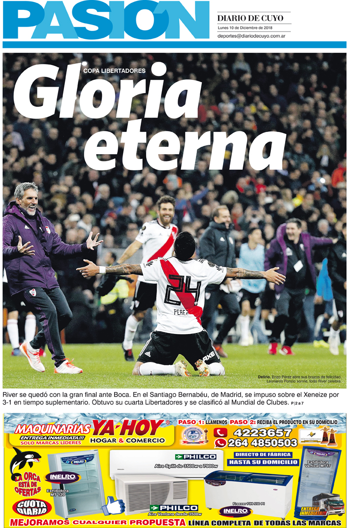 Diario de Cuyo | HOME | Noticias | Tapa Pasión Tapa Pasión 10 de Diciembre 2018 Por Redacción Diario de Cuyo 10/12/2018 · 0:00 Escuchar la noticia Escuchar la noticia Your browser doesn’t support HTML5 audio Tapa Pasión Ver los comentarios ›