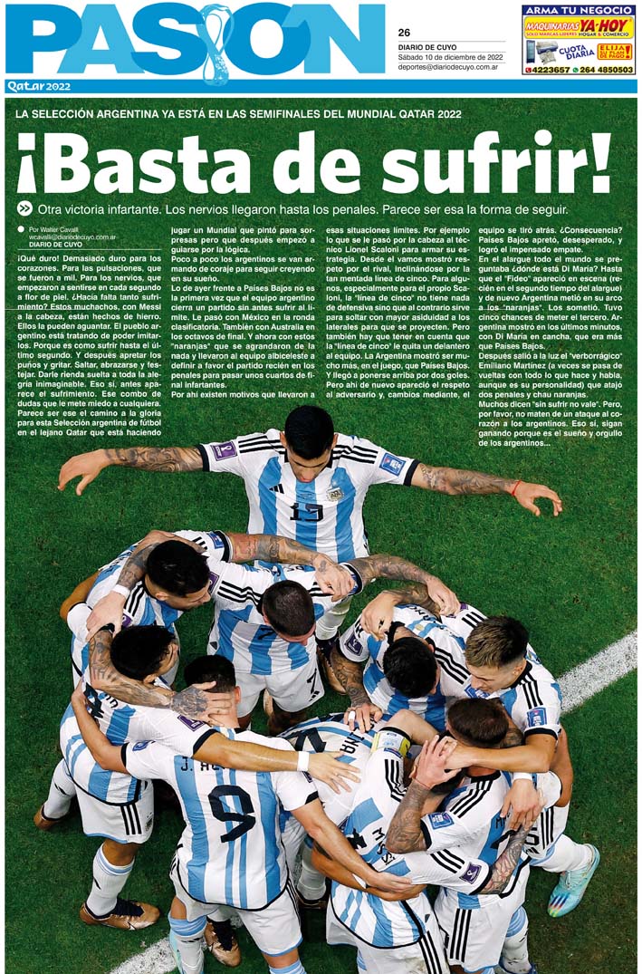 Diario de Cuyo | HOME | Noticias Tapa Pasión 10 de Diciembre del 2022 Por Redacción Diario de Cuyo 09/12/2022 · 0:00 Escuchar la noticia Escuchar la noticia Your browser doesn’t support HTML5 audio Ver los comentarios ›