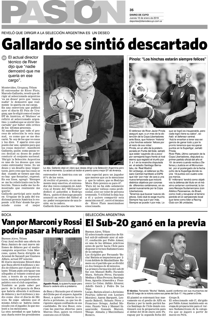 Diario de Cuyo | HOME | Noticias | Tapa Pasión Tapa Pasión 10 de Enero 2019 Por Redacción Diario de Cuyo 09/01/2019 · 0:00 Escuchar la noticia Escuchar la noticia Your browser doesn’t support HTML5 audio Tapa Pasión Ver los comentarios ›