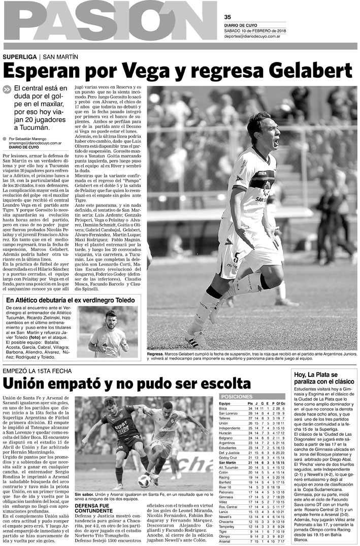 Diario de Cuyo | HOME | Noticias | Tapa Pasión Tapa Pasión 10 de Febrero del 2018 Por Redacción Diario de Cuyo 09/02/2018 · 0:00 Escuchar la noticia Escuchar la noticia Your browser doesn’t support HTML5 audio Tapa Pasión Ver los comentarios ›