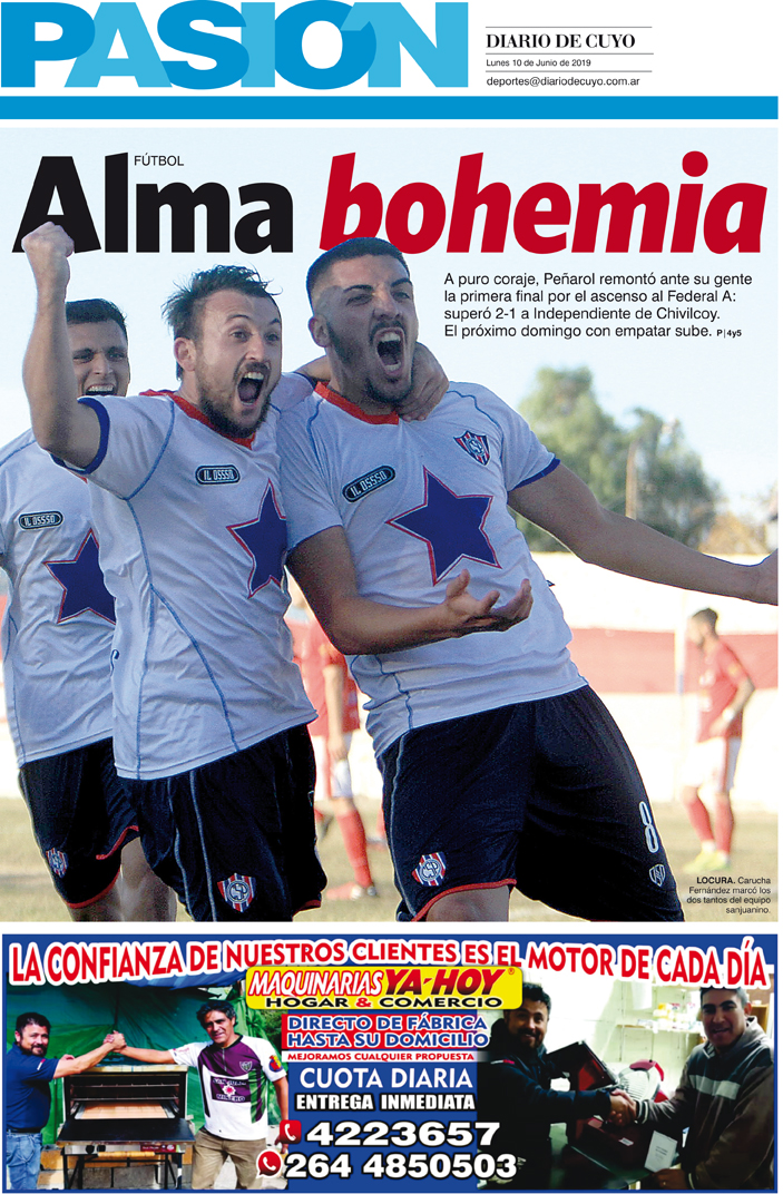 Diario de Cuyo | HOME | Noticias | Tapa Pasión Tapa Pasión 10 de Junio 2019 Por Redacción Diario de Cuyo 09/06/2019 · 0:00 Escuchar la noticia Escuchar la noticia Your browser doesn’t support HTML5 audio Tapa Pasión Ver los comentarios ›