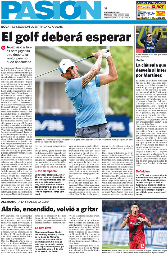 Diario de Cuyo | HOME | Noticias Tapa Pasión 10 de Junio del 2020 Por Redacción Diario de Cuyo 09/06/2020 · 0:00 Escuchar la noticia Escuchar la noticia Your browser doesn’t support HTML5 audio Ver los comentarios ›