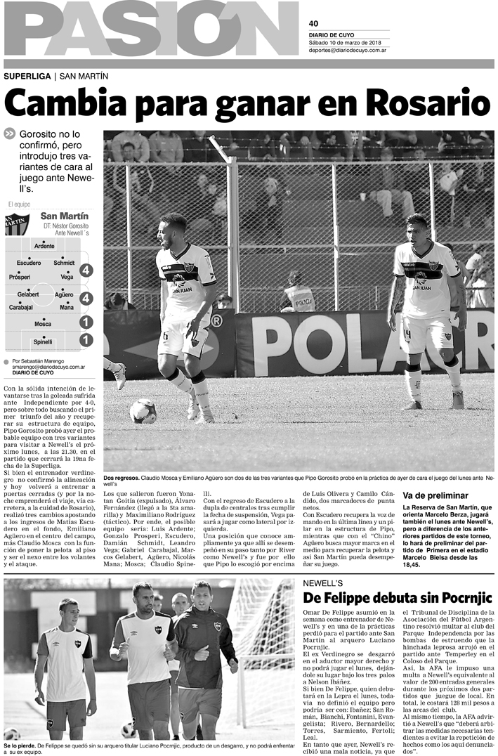 Diario de Cuyo | HOME | Noticias | Tapa Pasión Tapa Pasión 10 de Marzo de 2018 Por Redacción Diario de Cuyo 10/03/2018 · 0:00 Escuchar la noticia Escuchar la noticia Your browser doesn’t support HTML5 audio Tapa Pasión Ver los comentarios ›