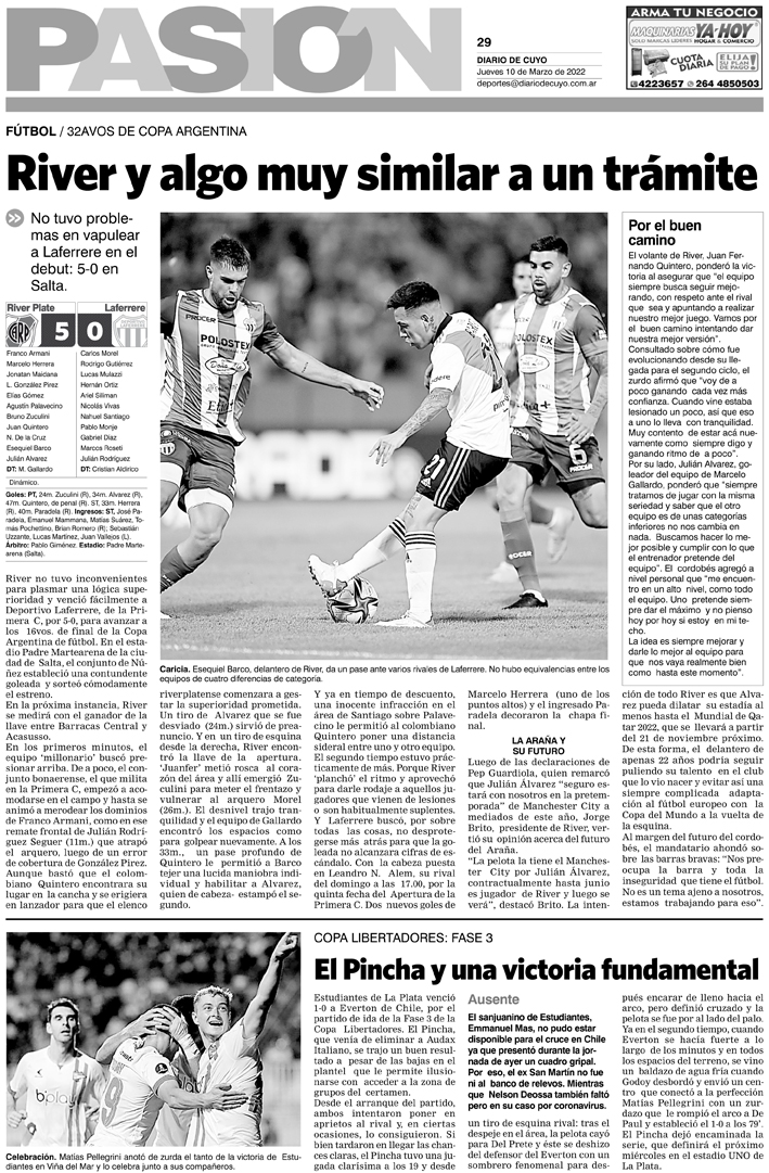 Diario de Cuyo | HOME | Noticias Tapa Pasión 10 de Marzo del 2022 Por Redacción Diario de Cuyo 10/03/2022 · 0:00 Escuchar la noticia Escuchar la noticia Your browser doesn’t support HTML5 audio Ver los comentarios ›