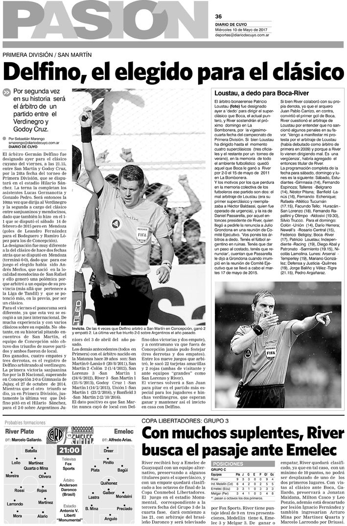 Diario de Cuyo | HOME | Noticias Tapa Pasión 10 de Mayo del 2017 Por Redacción Diario de Cuyo 09/05/2017 · 0:00 Escuchar la noticia Escuchar la noticia Your browser doesn’t support HTML5 audio Ver los comentarios ›