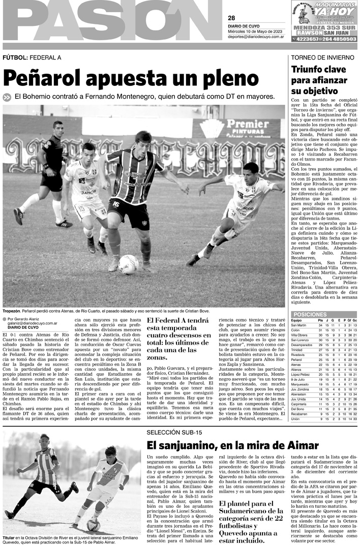 Diario de Cuyo | HOME | Noticias Tapa Pasión 10 de Mayo del 2023 Por Redacción Diario de Cuyo 09/05/2023 · 0:00 Escuchar la noticia Escuchar la noticia Your browser doesn’t support HTML5 audio Ver los comentarios ›