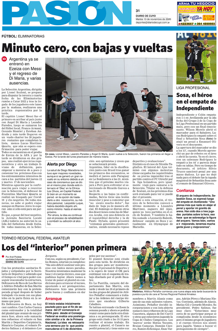 Diario de Cuyo | HOME | Noticias Tapa Pasión 10 de Noviembre del 2020 Por Redacción Diario de Cuyo 09/11/2020 · 0:00 Escuchar la noticia Escuchar la noticia Your browser doesn’t support HTML5 audio Ver los comentarios ›