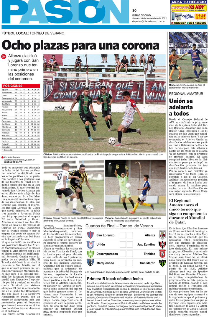 Diario de Cuyo | HOME | Noticias Tapa Pasión 10 de Noviembre del 2022 Por Redacción Diario de Cuyo 09/11/2022 · 0:00 Escuchar la noticia Escuchar la noticia Your browser doesn’t support HTML5 audio Ver los comentarios ›