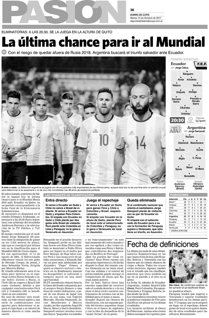 Diario de Cuyo | HOME | Noticias Tapa Pasión 10 de Octubre de 2017 Por Redacción Diario de Cuyo 09/10/2017 · 0:00 Escuchar la noticia Escuchar la noticia Your browser doesn’t support HTML5 audio Ver los comentarios ›