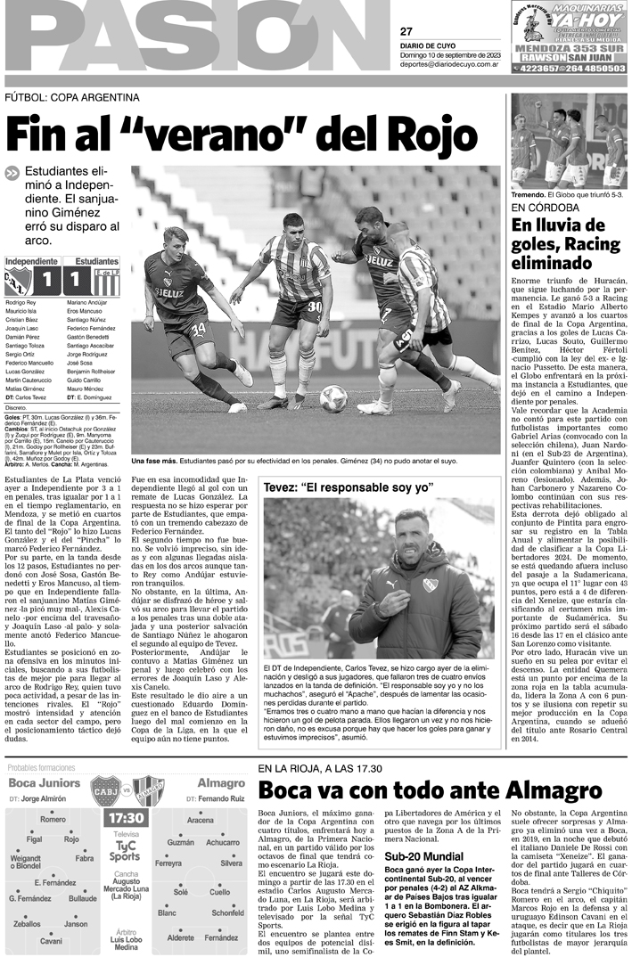 Diario de Cuyo | HOME | Noticias Tapa Pasión 10 de Septiembre de 2023 Por Redacción Diario de Cuyo 09/09/2023 · 0:00 Escuchar la noticia Escuchar la noticia Your browser doesn’t support HTML5 audio Ver los comentarios ›