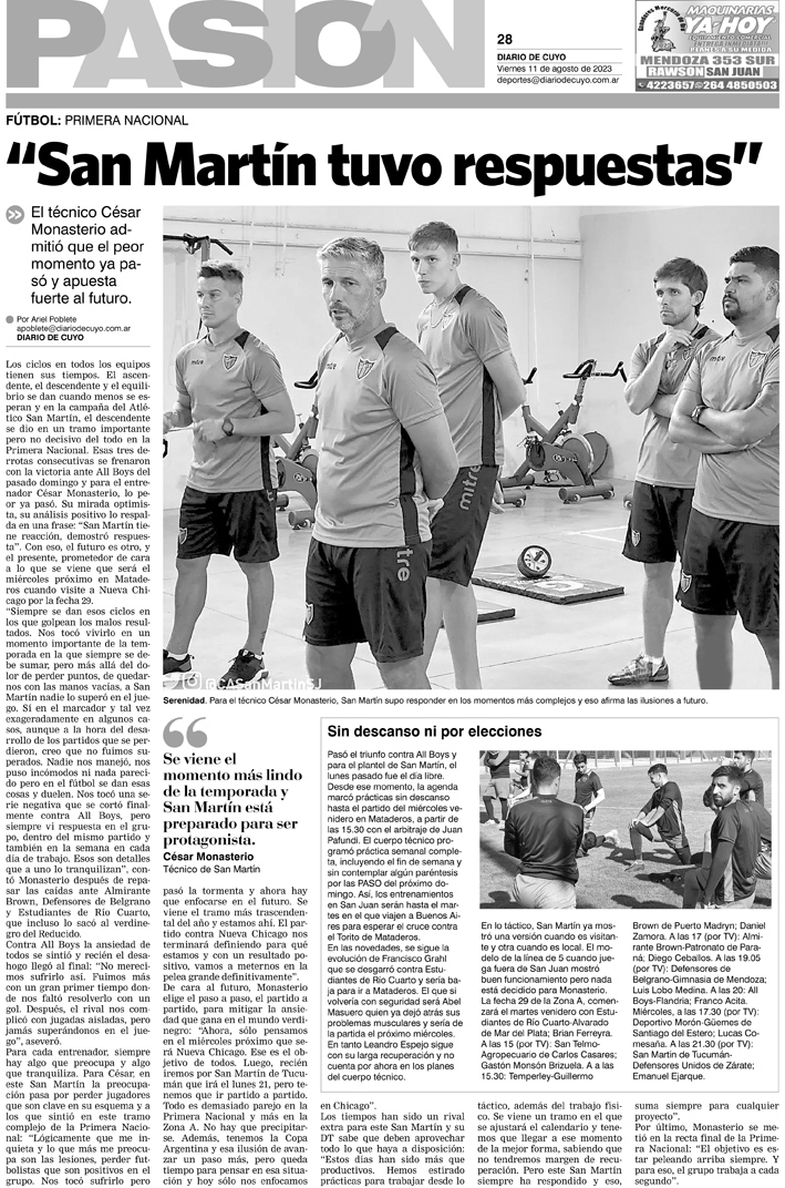 Diario de Cuyo | HOME | Noticias Tapa Pasión 11 de Agosto del 2023 Por Redacción Diario de Cuyo 10/08/2023 · 0:00 Escuchar la noticia Escuchar la noticia Your browser doesn’t support HTML5 audio Ver los comentarios ›