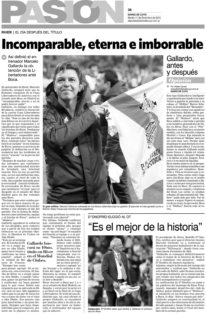Diario de Cuyo | HOME | Noticias | Tapa Pasión Tapa Pasión 11 de Diciembre 2018 Por Redacción Diario de Cuyo 11/12/2018 · 0:00 Escuchar la noticia Escuchar la noticia Your browser doesn’t support HTML5 audio Tapa Pasión Ver los comentarios ›