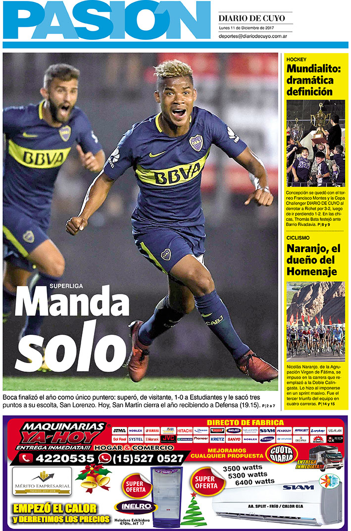 Diario de Cuyo | HOME | Noticias | Tapa Pasión Tapa Pasión 11 de Diciembre del 2017 Por Redacción Diario de Cuyo 11/12/2017 · 0:00 Escuchar la noticia Escuchar la noticia Your browser doesn’t support HTML5 audio Tapa Pasión Ver los comentarios ›