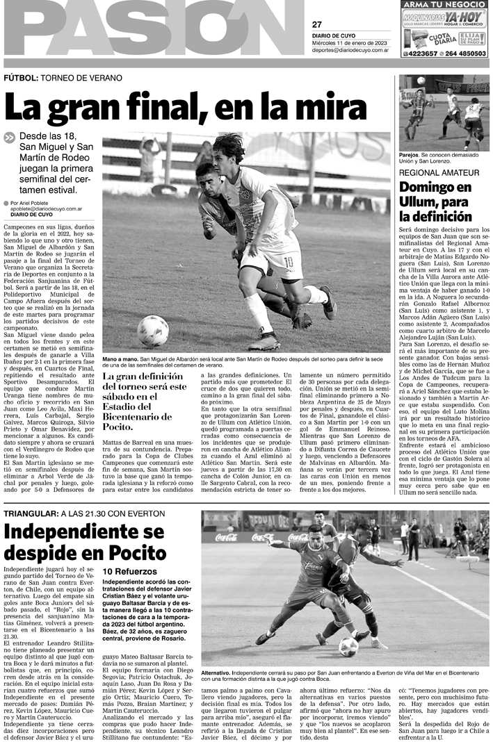 Diario de Cuyo | HOME | Noticias Tapa Pasión 11 de Enero del 2023 Por Redacción Diario de Cuyo 10/01/2023 · 0:00 Escuchar la noticia Escuchar la noticia Your browser doesn’t support HTML5 audio Ver los comentarios ›