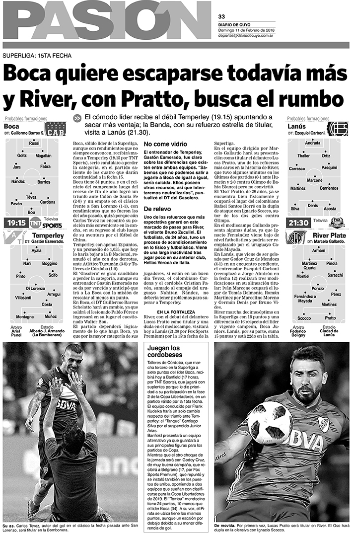 Diario de Cuyo | HOME | Noticias | Tapa Pasión Tapa Pasión 11 de Febrero del 2018 Por Redacción Diario de Cuyo 10/02/2018 · 0:00 Escuchar la noticia Escuchar la noticia Your browser doesn’t support HTML5 audio Tapa Pasión Ver los comentarios ›