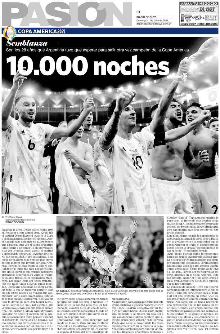 Diario de Cuyo | HOME | Noticias Tapa Pasión 11 de Julio del 2021 Por Redacción Diario de Cuyo 11/07/2021 · 0:00 Escuchar la noticia Escuchar la noticia Your browser doesn’t support HTML5 audio Ver los comentarios ›