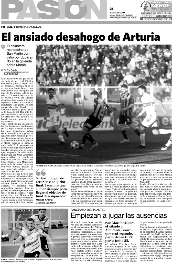 Diario de Cuyo | HOME | Noticias Tapa Pasión 11 de Julio del 2023 Por Redacción Diario de Cuyo 10/07/2023 · 0:00 Escuchar la noticia Escuchar la noticia Your browser doesn’t support HTML5 audio Ver los comentarios ›