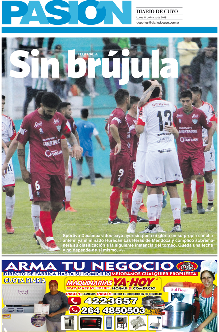 Diario de Cuyo | HOME | Noticias | Tapa Pasión Tapa Pasión 11 de Marzo de 2019 Por Redacción Diario de Cuyo 11/03/2019 · 0:00 Escuchar la noticia Escuchar la noticia Your browser doesn’t support HTML5 audio Tapa Pasión Ver los comentarios ›