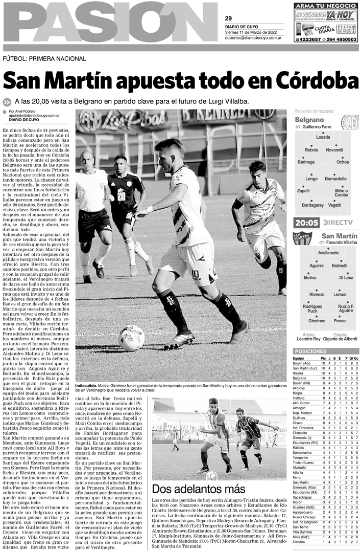 Diario de Cuyo | HOME | Noticias Tapa Pasión 11 de Marzo del 2022 Por Redacción Diario de Cuyo 10/03/2022 · 0:00 Escuchar la noticia Escuchar la noticia Your browser doesn’t support HTML5 audio Ver los comentarios ›