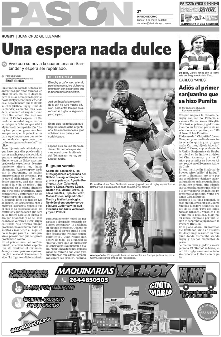 Diario de Cuyo | HOME | Noticias Tapa Pasión 11 de Mayo del 2020 Por Redacción Diario de Cuyo 10/05/2020 · 0:00 Escuchar la noticia Escuchar la noticia Your browser doesn’t support HTML5 audio Ver los comentarios ›