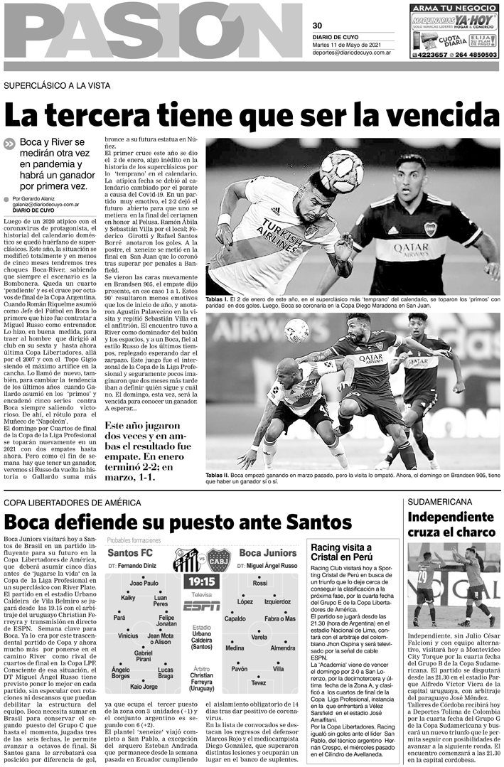 Diario de Cuyo | HOME | Noticias Tapa Pasión 11 de Mayo del 2021 Por Redacción Diario de Cuyo 10/05/2021 · 0:00 Escuchar la noticia Escuchar la noticia Your browser doesn’t support HTML5 audio Ver los comentarios ›