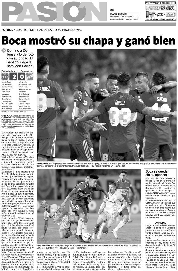 Diario de Cuyo | HOME | Noticias Tapa Pasión 11 de Mayo del 2022 Por Redacción Diario de Cuyo 11/05/2022 · 0:00 Escuchar la noticia Escuchar la noticia Your browser doesn’t support HTML5 audio Ver los comentarios ›