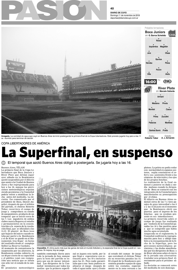 Diario de Cuyo | HOME | Noticias | Tapa Pasión Tapa Pasión 11 de Noviembre de 2018 Por Redacción Diario de Cuyo 10/11/2018 · 0:00 Escuchar la noticia Escuchar la noticia Your browser doesn’t support HTML5 audio Tapa Pasión Ver los comentarios ›