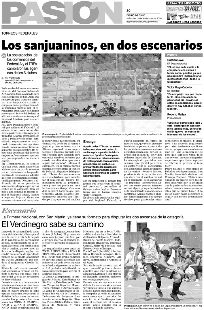 Diario de Cuyo | HOME | Noticias Tapa Pasión 11 de Noviembre del 2020 Por Redacción Diario de Cuyo 10/11/2020 · 0:00 Escuchar la noticia Escuchar la noticia Your browser doesn’t support HTML5 audio Ver los comentarios ›
