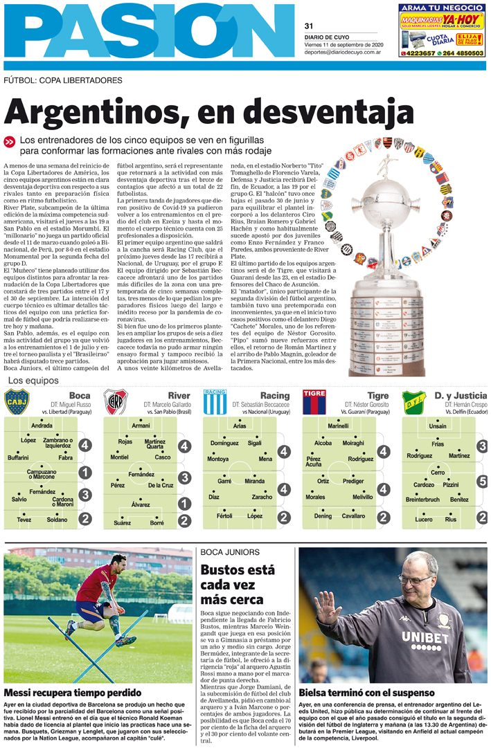 Diario de Cuyo | HOME | Noticias | Tapa Pasión Tapa Pasión 11 de Septiembre de 2020 Por Redacción Diario de Cuyo 10/09/2020 · 0:00 Escuchar la noticia Escuchar la noticia Your browser doesn’t support HTML5 audio Tapa Pasión Ver los comentarios ›