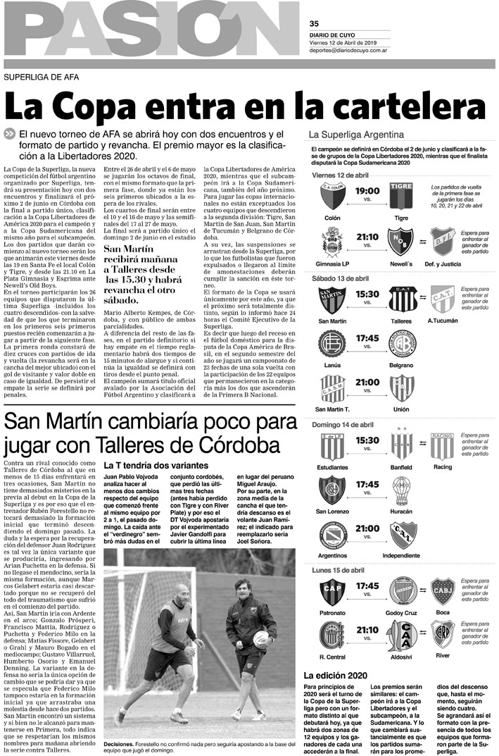 Diario de Cuyo | HOME | Noticias | Tapa Pasión Tapa Pasión 12 de Abril 2019 Por Redacción Diario de Cuyo 11/04/2019 · 0:00 Escuchar la noticia Escuchar la noticia Your browser doesn’t support HTML5 audio Tapa Pasión Ver los comentarios ›