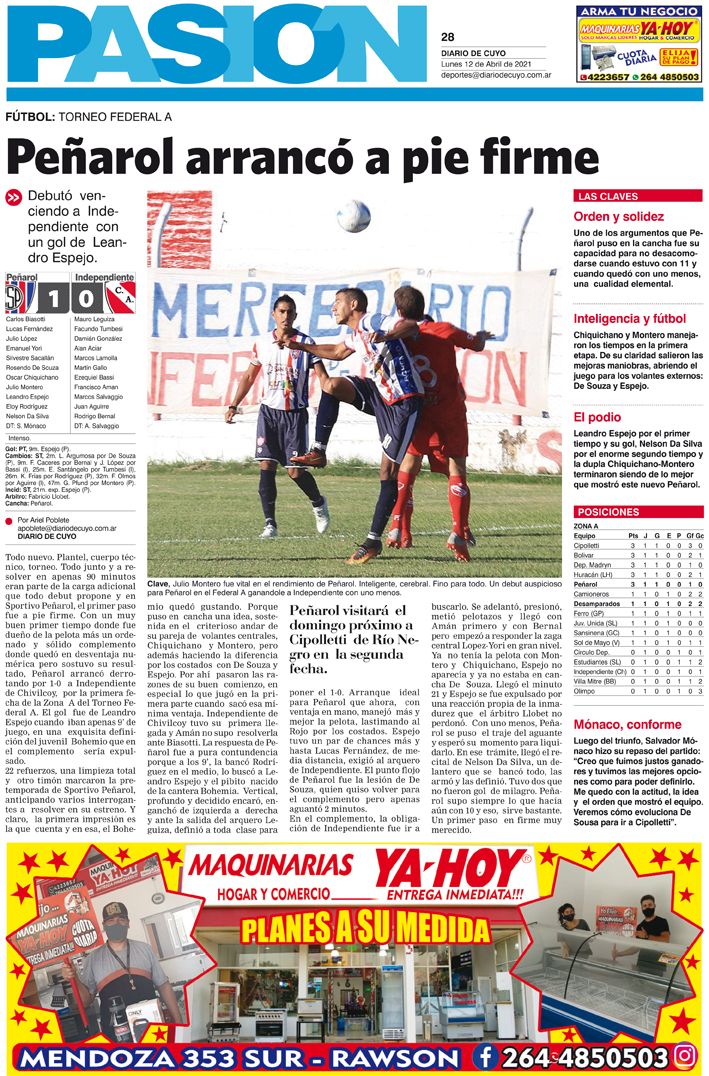 Diario de Cuyo | HOME | Noticias Tapa Pasión 12 de Abril del 2021 Por Redacción Diario de Cuyo 11/04/2021 · 0:00 Escuchar la noticia Escuchar la noticia Your browser doesn’t support HTML5 audio Ver los comentarios ›