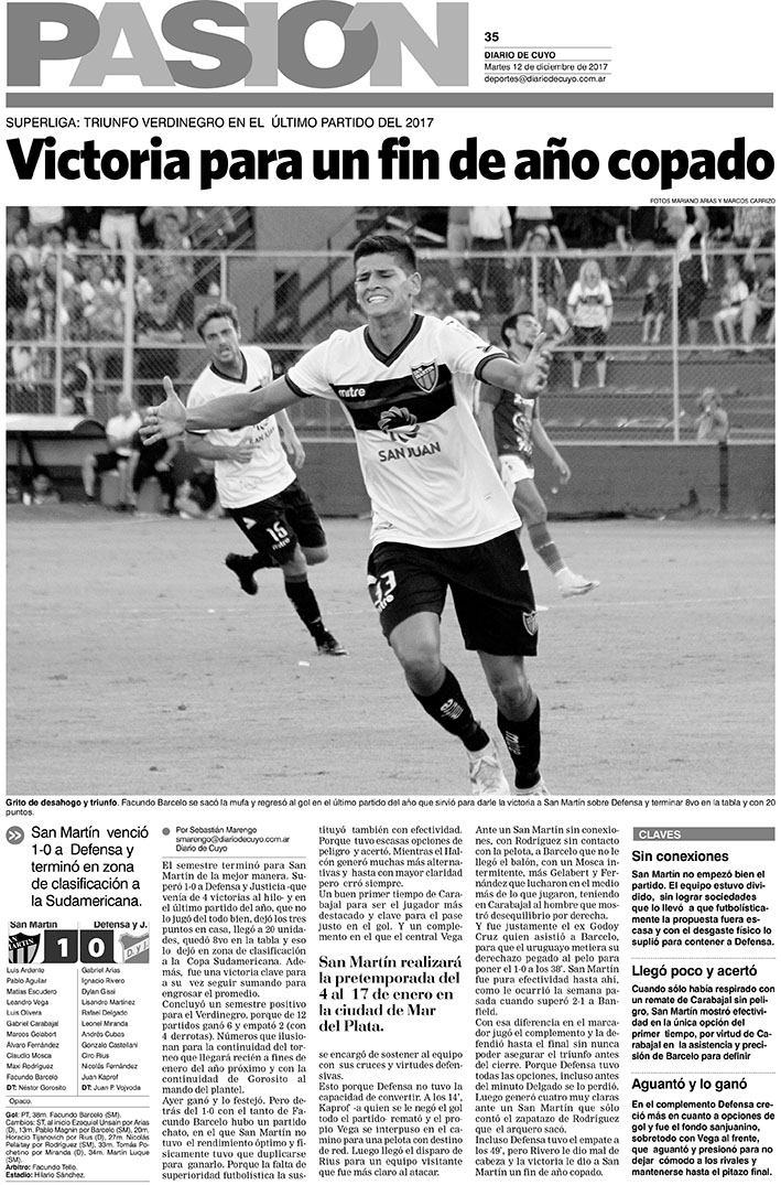 Diario de Cuyo | HOME | Noticias | Tapa Pasión Tapa Pasión 12 de Diciembre del 2017 Por Redacción Diario de Cuyo 11/12/2017 · 0:00 Escuchar la noticia Escuchar la noticia Your browser doesn’t support HTML5 audio Tapa Pasión Ver los comentarios ›