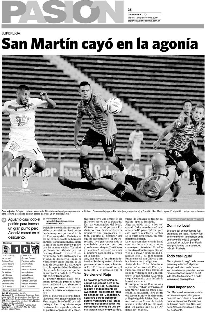 Diario de Cuyo | HOME | Noticias | Tapa Pasión Tapa Pasión 12 de Febrero 2019 Por Redacción Diario de Cuyo 11/02/2019 · 0:00 Escuchar la noticia Escuchar la noticia Your browser doesn’t support HTML5 audio Tapa Pasión Ver los comentarios ›