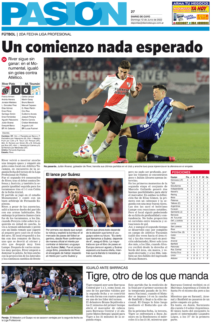Diario de Cuyo | HOME | Noticias Tapa Pasión 12 de Junio de 2022 Por Redacción Diario de Cuyo 11/06/2022 · 0:00 Escuchar la noticia Escuchar la noticia Your browser doesn’t support HTML5 audio Ver los comentarios ›
