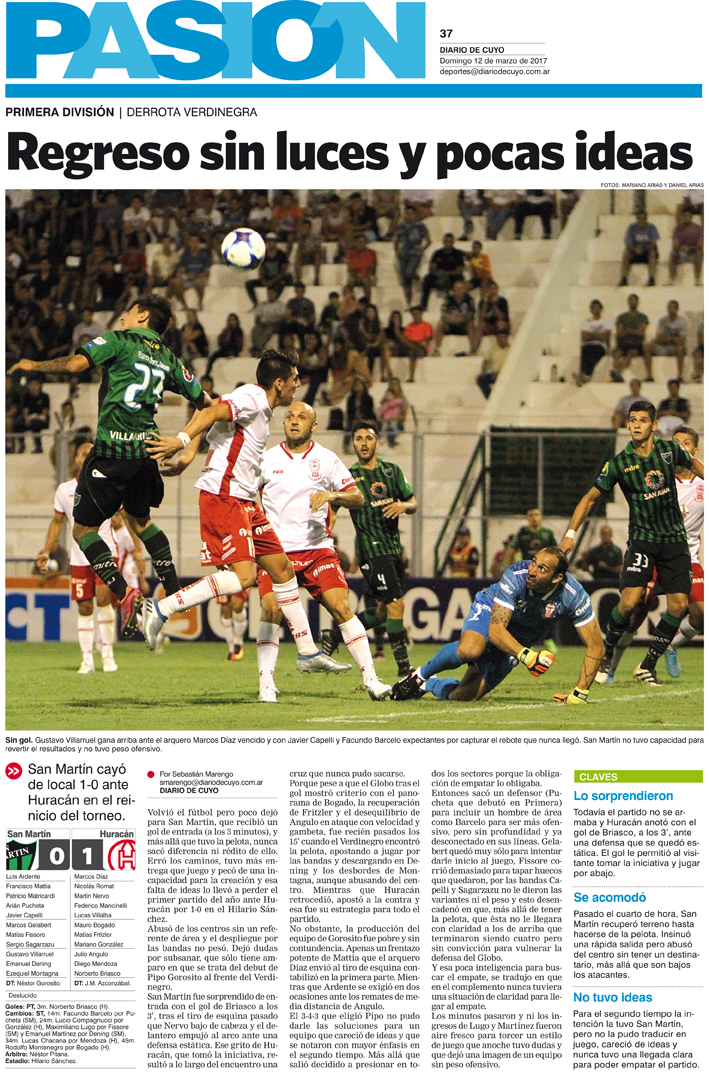 Diario de Cuyo | HOME | Noticias Tapa Pasion 12 de marzo de 2017 Por Redacción Diario de Cuyo 12/03/2017 · 0:00 Escuchar la noticia Escuchar la noticia Your browser doesn’t support HTML5 audio Ver los comentarios ›