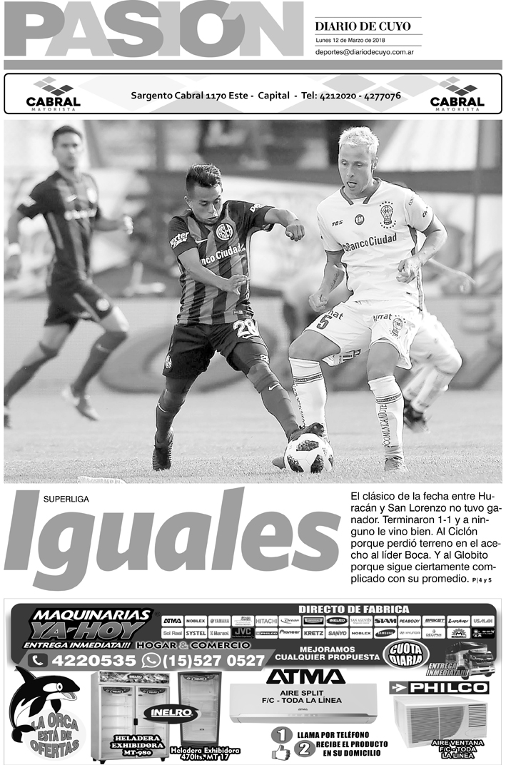 Diario de Cuyo | HOME | Noticias | Tapa Pasión Tapa Pasión 12 de Marzo del 2018 Por Redacción Diario de Cuyo 11/03/2018 · 0:00 Escuchar la noticia Escuchar la noticia Your browser doesn’t support HTML5 audio Tapa Pasión Ver los comentarios ›