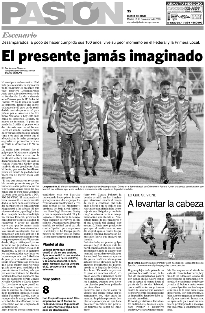 Diario de Cuyo | HOME | Noticias | Tapa Pasión Tapa Pasión 12 de Noviembre 2019 Por Redacción Diario de Cuyo 12/11/2019 · 0:00 Escuchar la noticia Escuchar la noticia Your browser doesn’t support HTML5 audio Tapa Pasión Ver los comentarios ›