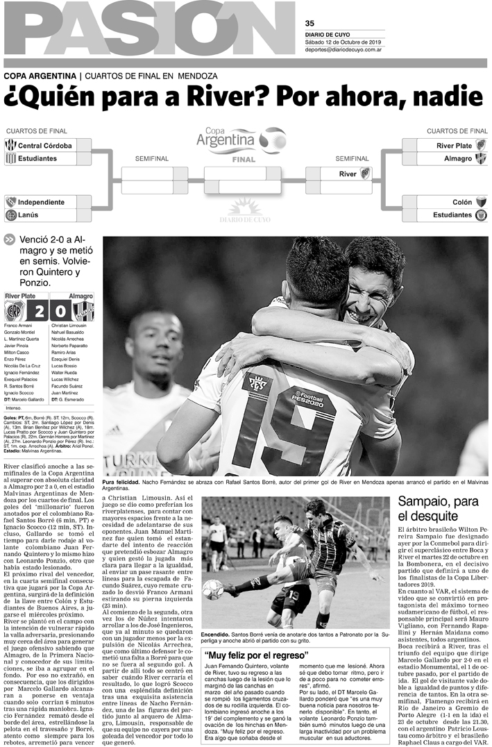 Diario de Cuyo | HOME | Noticias | Tapa Pasión Tapa Pasión 12 de Octubre 2019 Por Redacción Diario de Cuyo 11/10/2019 · 0:00 Escuchar la noticia Escuchar la noticia Your browser doesn’t support HTML5 audio Tapa Pasión Ver los comentarios ›