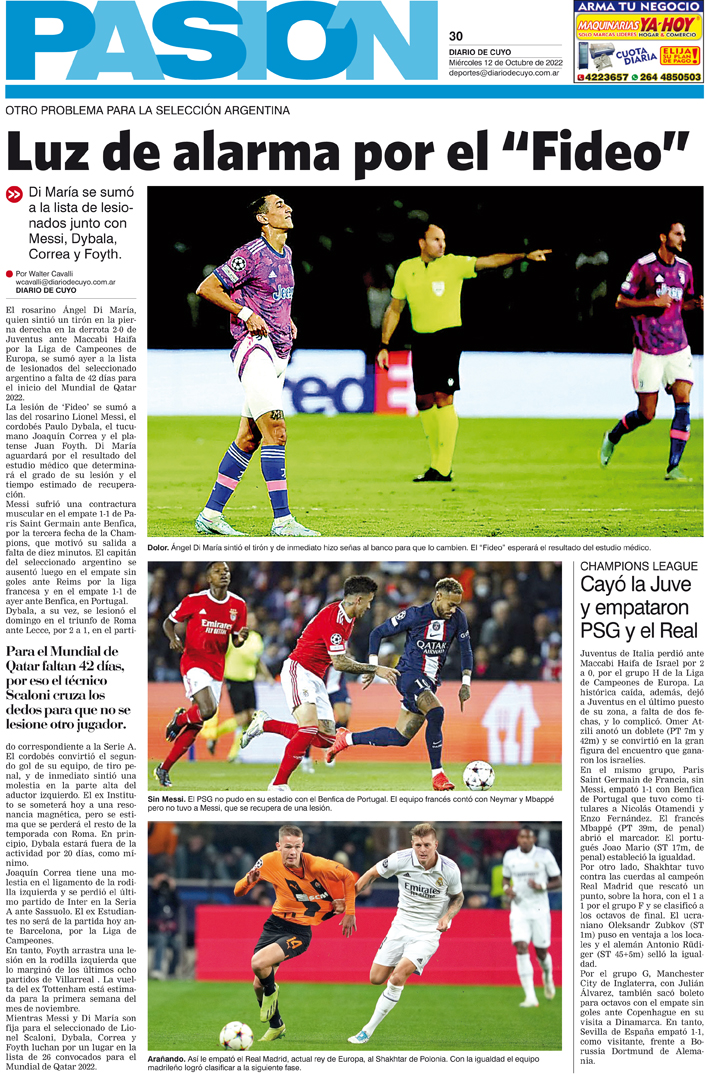 Diario de Cuyo | HOME | Noticias Tapa Pasión 12 de Octubre del 2022 Por Redacción Diario de Cuyo 12/10/2022 · 0:00 Escuchar la noticia Escuchar la noticia Your browser doesn’t support HTML5 audio Ver los comentarios ›