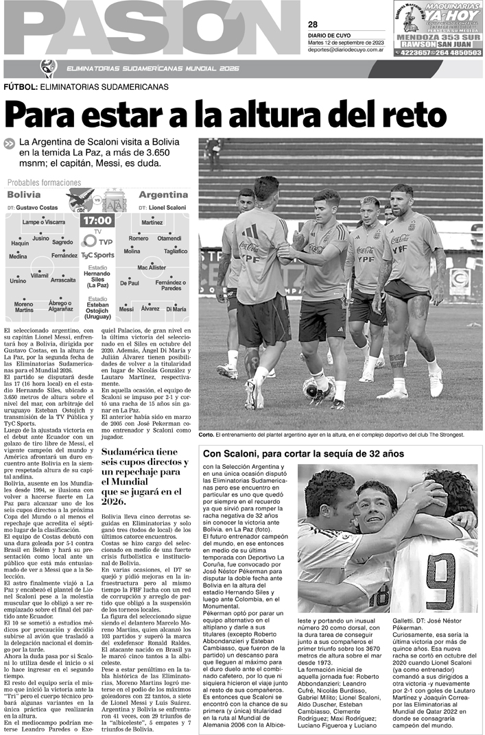 Diario de Cuyo | HOME | Noticias Tapa Pasión 12 de Septiembre del 2023 Por Redacción Diario de Cuyo 11/09/2023 · 0:00 Escuchar la noticia Escuchar la noticia Your browser doesn’t support HTML5 audio Ver los comentarios ›