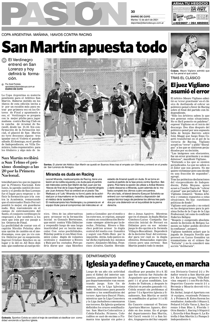 Diario de Cuyo | HOME | Noticias Tapa Pasión 13 de Abril del 2021 Por Redacción Diario de Cuyo 12/04/2021 · 0:00 Escuchar la noticia Escuchar la noticia Your browser doesn’t support HTML5 audio Ver los comentarios ›