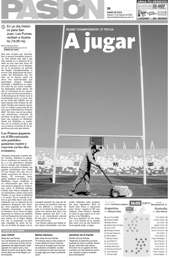 Diario de Cuyo | HOME | Noticias Tapa Pasión 13 de Agosto de 2022 Por Redacción Diario de Cuyo 12/08/2022 · 0:00 Escuchar la noticia Escuchar la noticia Your browser doesn’t support HTML5 audio Ver los comentarios ›