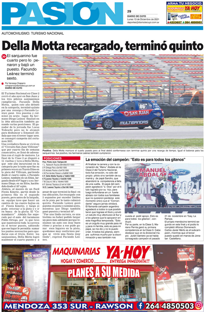 Diario de Cuyo | HOME | Noticias Tapa Pasión 13 de Diciembre del 2021 Por Redacción Diario de Cuyo 13/12/2021 · 0:00 Escuchar la noticia Escuchar la noticia Your browser doesn’t support HTML5 audio Ver los comentarios ›