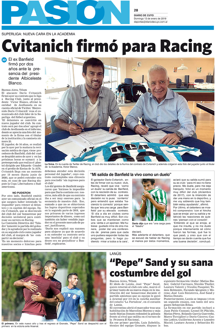 Diario de Cuyo | HOME | Noticias | Tapa Pasión Tapa Pasión 13 de Enero 2019 Por Redacción Diario de Cuyo 12/01/2019 · 0:00 Escuchar la noticia Escuchar la noticia Your browser doesn’t support HTML5 audio Tapa Pasión Ver los comentarios ›