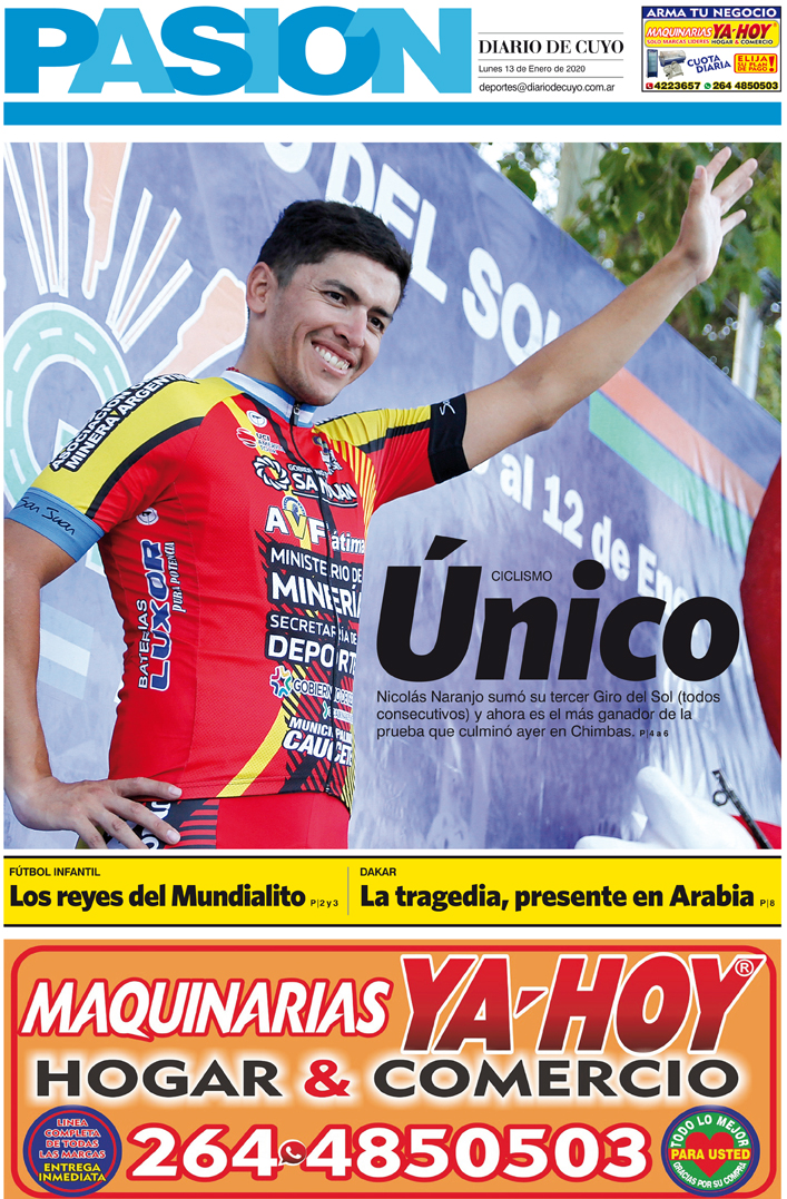 Diario de Cuyo | HOME | Noticias | Tapa Pasión Tapa pasión 13 de Enero 2020 Por Redacción Diario de Cuyo 12/01/2020 · 0:00 Escuchar la noticia Escuchar la noticia Your browser doesn’t support HTML5 audio Tapa Pasión Ver los comentarios ›