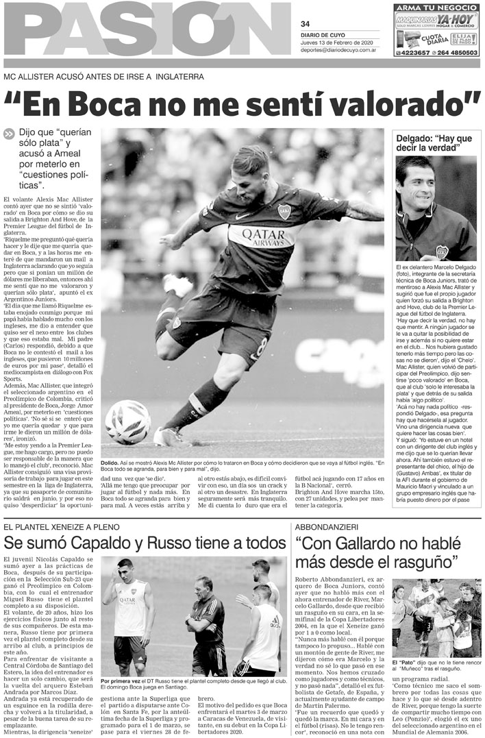 Diario de Cuyo | HOME | Noticias Tapa Pasión 13 de Febrero del 2020 Por Redacción Diario de Cuyo 12/02/2020 · 0:00 Escuchar la noticia Escuchar la noticia Your browser doesn’t support HTML5 audio Ver los comentarios ›